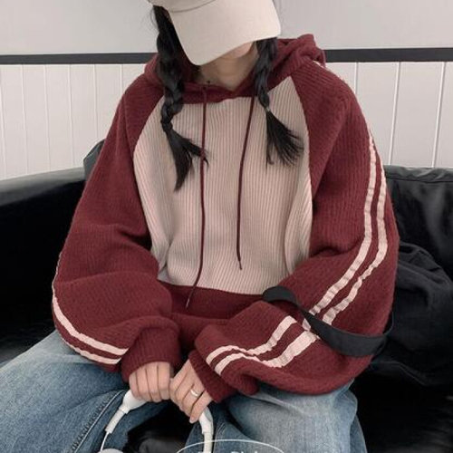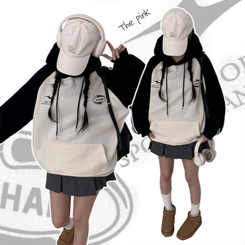 더핑크 / 빈코 오버핏 배색 나그랑 트랙 골지 기모 후드티