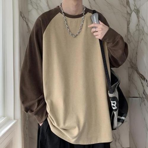 융기모티셔츠 남자 라운드넥 겨울 긴팔티 배색 나그랑 롱슬리브 긴팔티 롱슬리브 기모티 기본티 베이직티