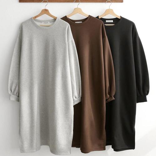 따숩 기모 루즈핏 맨투맨 롱 원피스