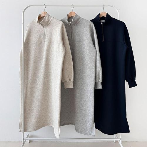 [옷자락] 여성 겨울 하이넥 반집업 롱 원피스 옆슬릿 기모 투웨이