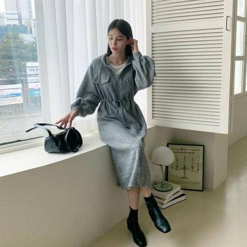 [빅사이즈]이블렛 티넨스 기모 절개 후드 롱 원피스 제이스타일