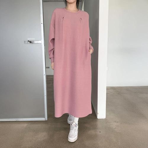 [옷자락] 여자 스트릿패션 라운드넥 기모 루즈핏 롱 원피스