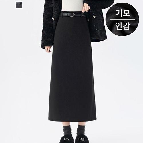 [페이릿] [~77까지][벨트+스커트set]오센 융기모 뒷트임 모직 롱스커트