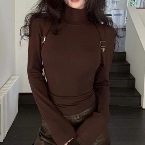 기모 긴팔티 목폴라 티셔츠 유니크한 스트랩 디자인 WFLACUX