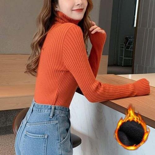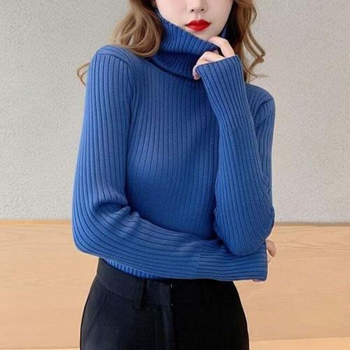여성 슬림핏 기모 니트 골지 목폴라 티셔츠 LK-T003