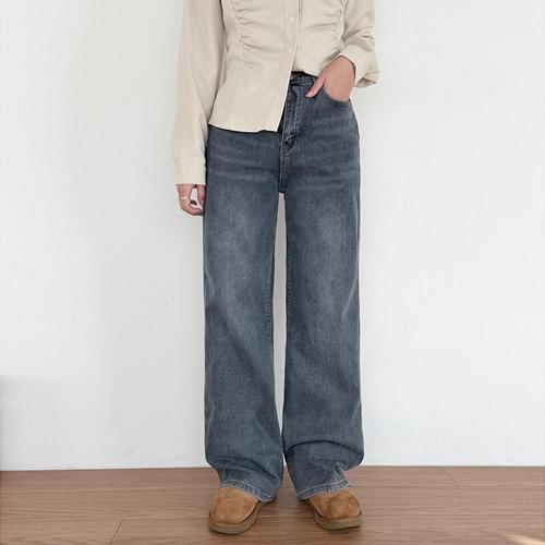 스타일나 여자 겨울 따뜻한 기모 스판 히든밴딩 논페이드 통일자 데님팬츠 다리가 길어보이는 생지 와이드