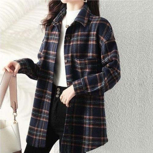 [셀러허브_여성트랜드패션]모직 체크 간절기 오버핏 셔츠 기모 남방 루즈핏 겨울