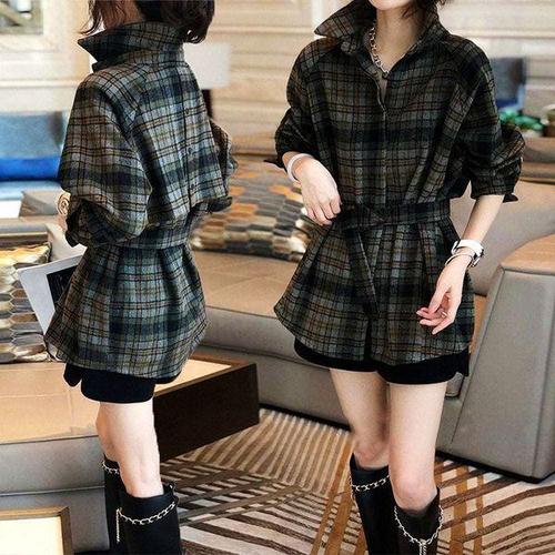 [셀럽하우스]가을 ATWA8312 예쁜 여자 기모 남방 셔츠 롱 여성 체크