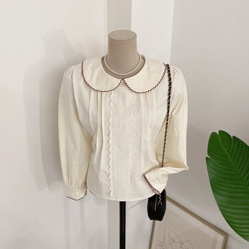허니제이 / 엘리튼 레이스 둥근 카라 피치기모 블라우스(3color)