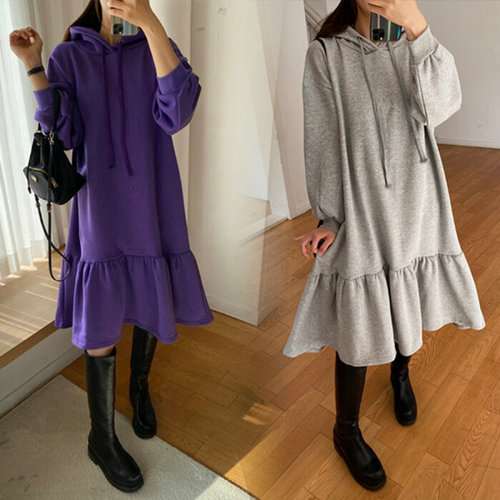 나야홍 / 여성 빅사이즈 프릴 기모 후드 롱 원피스 66-120 size