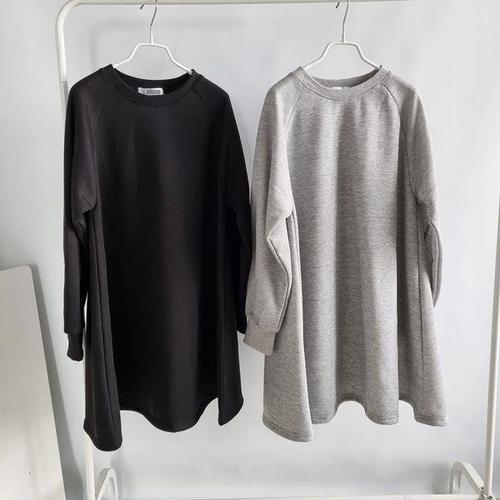 디테일웨어 여성 기모 뮤즈 롱원피스 허리 통밴딩 오버핏 플레어 스커트 포켓 편한원피스 강아지 산책 임산부 원피스