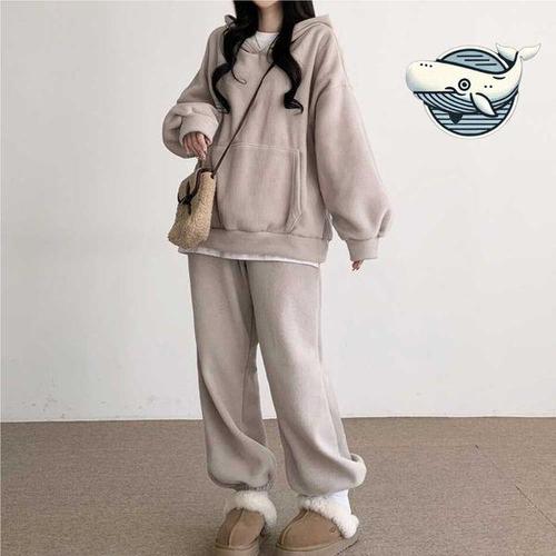 [에이치플러스몰]부드러운 기모 후드 집업 세트 가을겨울 여유핏