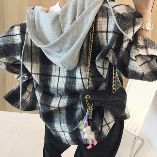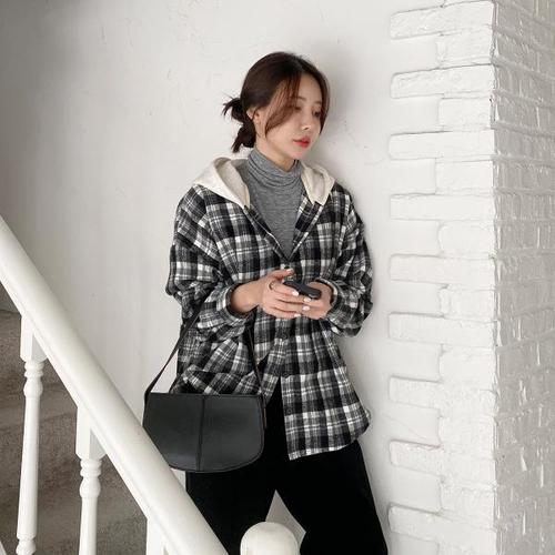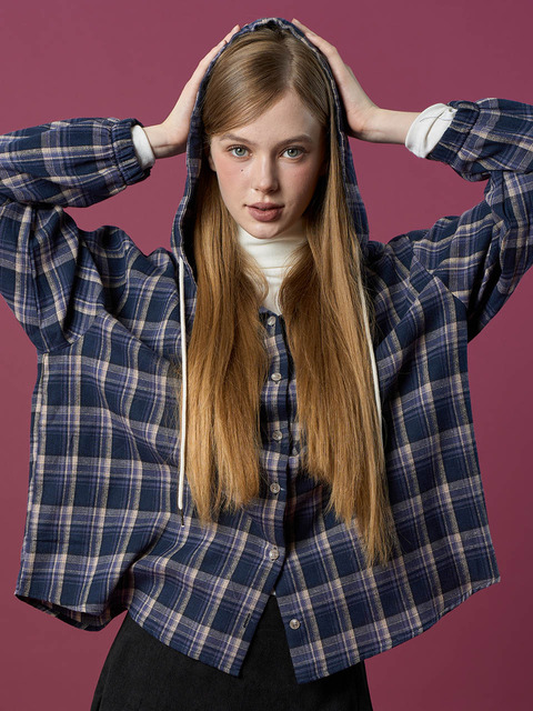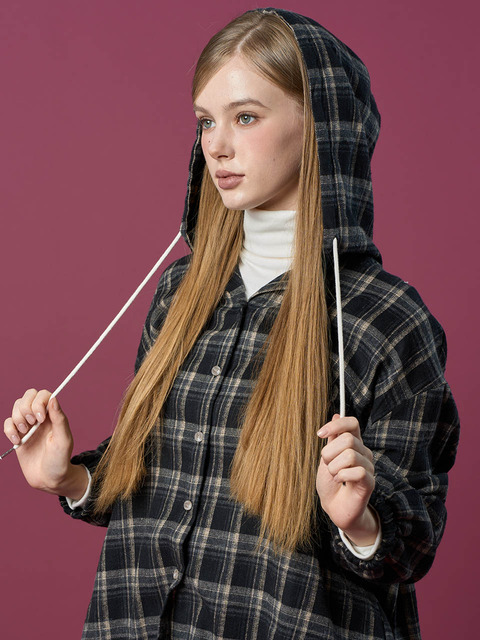 [하젤]융기모 겨울 체크 후드 셔츠_W2465
