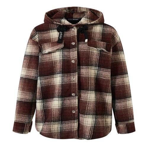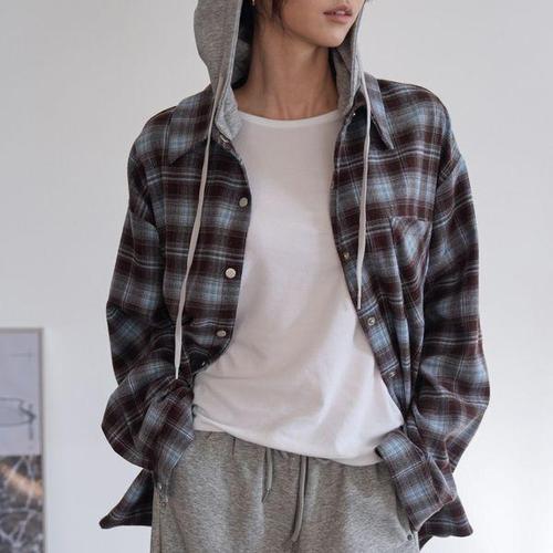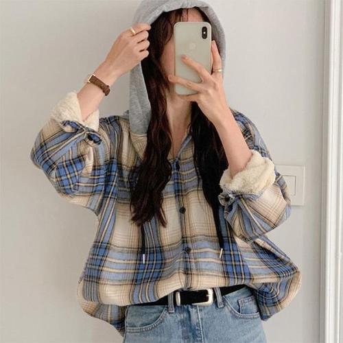 기모 후드 체크 남방 여성 루즈핏 셔츠 캐주얼 자켓