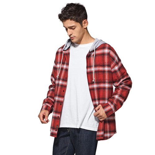 [하늘바라기]탈부착 후드 피치기모 체크셔츠