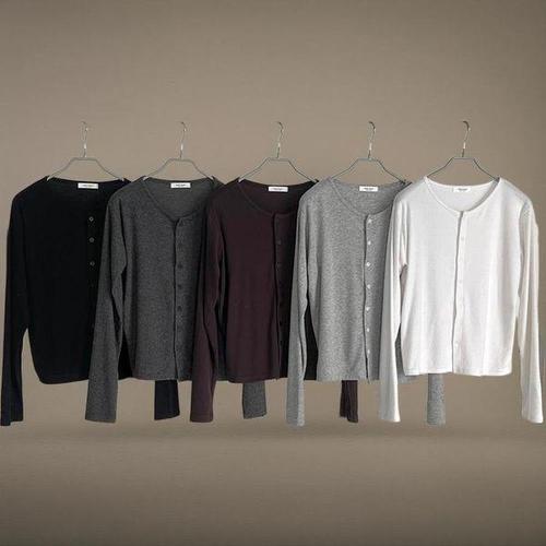 [신상오픈런]여자 간절기 라운드넥 버튼 무채색 기모 긴팔 가디건