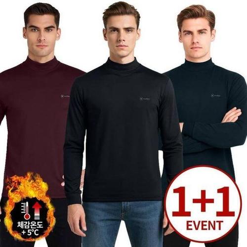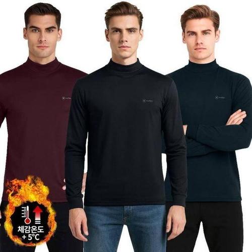 3종세트 기능성 남성 피치 기모 반목티셔츠 빅사이즈 기능성 긴팔티 베이직 반목티