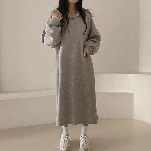 [엄지척]안감 여성 기모 후드 원피스 카라 롱원피스 니트 브이_19802916_667501