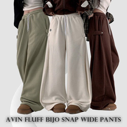 더핑크 / 어빈 옆 핀턱 기모 후리스 비조 스냅 와이드 팬츠
