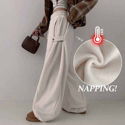 제니유 도톰한 겨울 여성 모직 기모 와이드 팬츠 빅사이즈