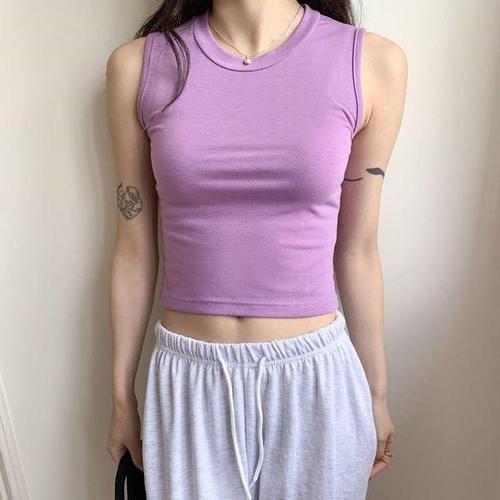 [신상오픈런]여성 기본 무지 컬러 면혼합 크롭 민소매 티셔츠