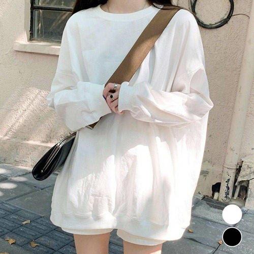 더하기443오버핏기본맨투맨롱티셔츠 롱맨투맨 WFLQW2B