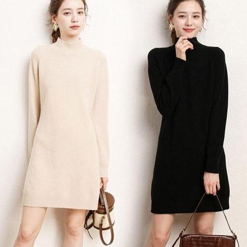 [엄지척]여성 기본 무지 디자인 반목 포근한 긴팔 니트 원피스_19953261_667501
