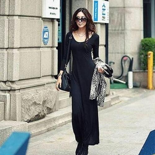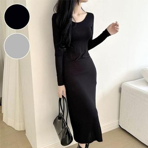 [엄지척]여성 기본 무지 라운드넥 긴팔 롱원피스 트임 원피스_19914306_667501