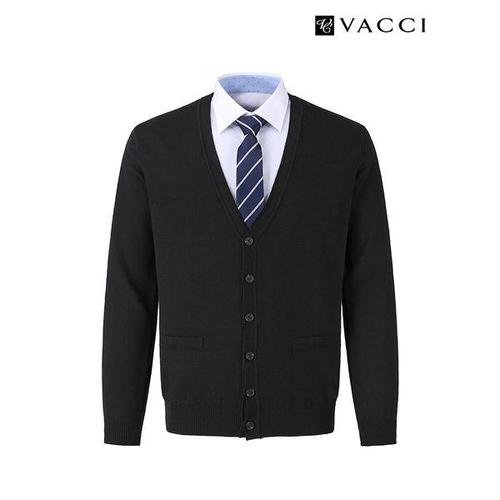 [바찌]기본 솔리드 브이넥 캐주얼 니트 가디건 스웨터 블랙 VK1O3PR111K0