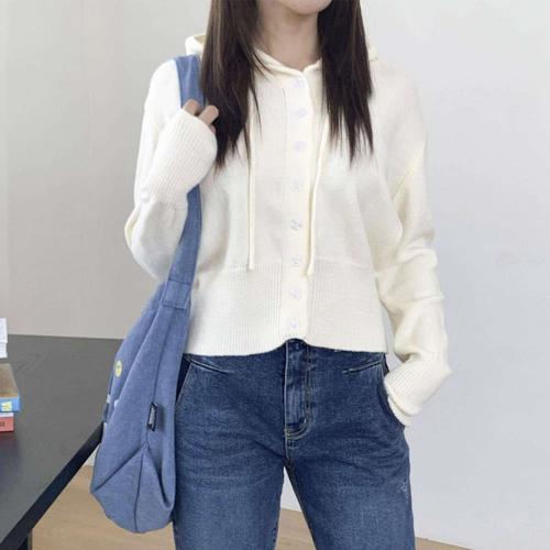[옷자락]여성 세미 크롭 후드 버튼 기본핏 니트 가디건