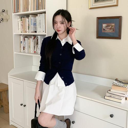 [옷자락]여성 여리핏 일상 기본 브이넥 니트 카디건