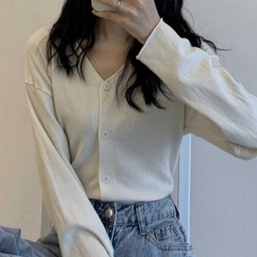 [끌레아]꾸안꾸 여리핏 아이보리 브이넥 단추 가디건 간절기 데일리룩 심플 기본 긴팔 니트
