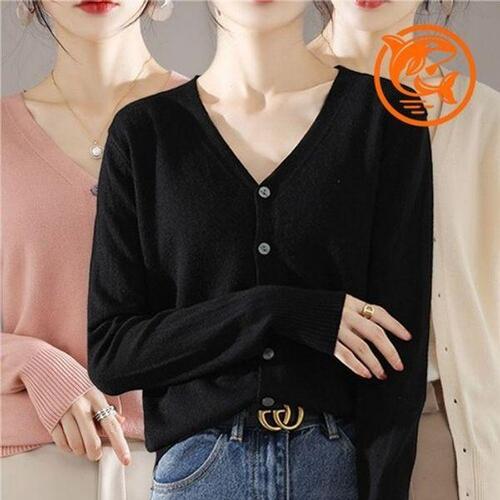 [끌레아]봄가을 필수 아이템 스타일리시 브이넥 긴팔 가디건 기본 단추 디자인