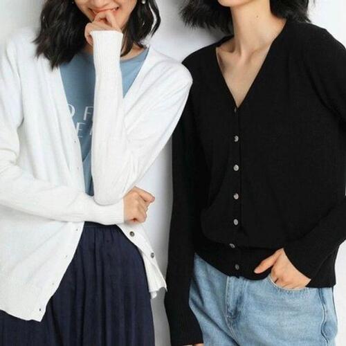 하얀비WR5004 구김없이 시원하고 부드러워 여름까지 착용가능한 여성 기본 브이넥 RN사 니트가디건 20컬러