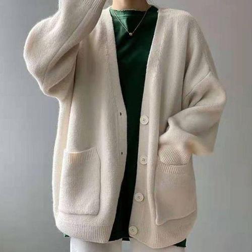 [에이치플러스몰]기본 디자인 가디건 주머니 단추 브이넥 니트 아우터