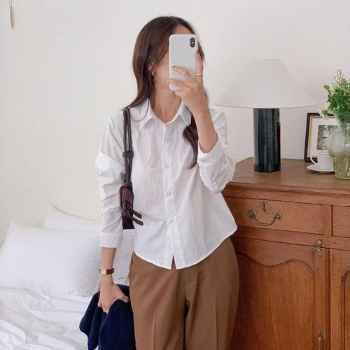 박남매 / 구김적은 링클프리 기본 크롭 긴팔 블라우스 P0007816
