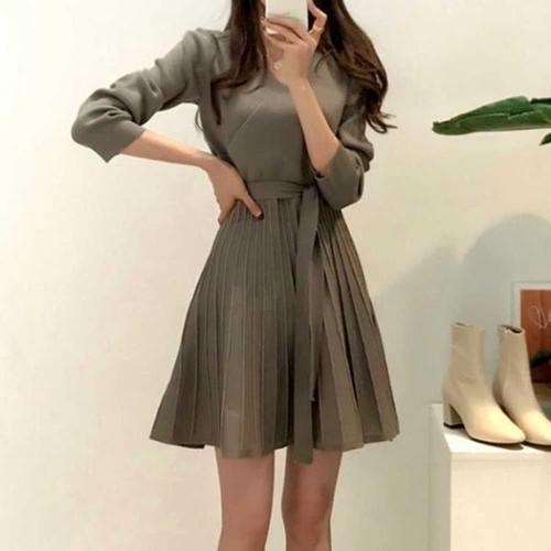 [오너클랜]인기상품 플리츠 플레어 미니 원피스 랩st 브이넥 허리스트랩 [WEBF2DF_250917]