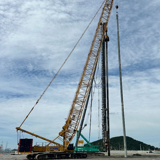 PHC파일 파일공사 기초공사 내진설계 크롤러크레인앵글크레인 임대(50톤~750톤)