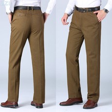 ZZL 남성 순면 캐주얼 바지 중년 와이드 캐주얼 바지 100% 면 아빠 바지 가을 겨울두꺼운 양복바지 주름 방지 긴 바지 남자 비즈니스 캐주얼 양복바지