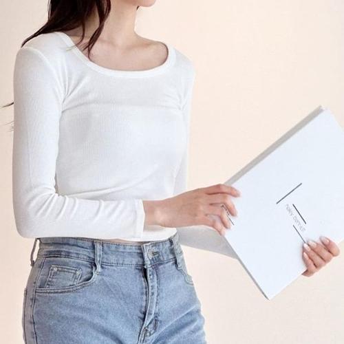 [엄지척]세미크롭 U넥 이너웨어 슬림핏 긴팔 티셔츠_19609830_667501