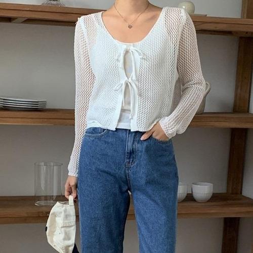 [에이치플러스몰]여자망사가디건 니트긴팔 데일리 여리 에어컨바람막이
