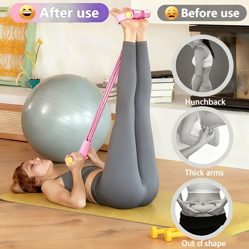 TEMU 운동용 저항 밴드 - 휴대용 홈 피트니스 시트업 로프 및 복부 슬리밍 장치 (미끄럼 방지 발 페달 포함). 전신 운동: 팔, 양팔, 삼두, 가슴, 등, 코어, 복근, 허리, 다리, 양봉근, 발목