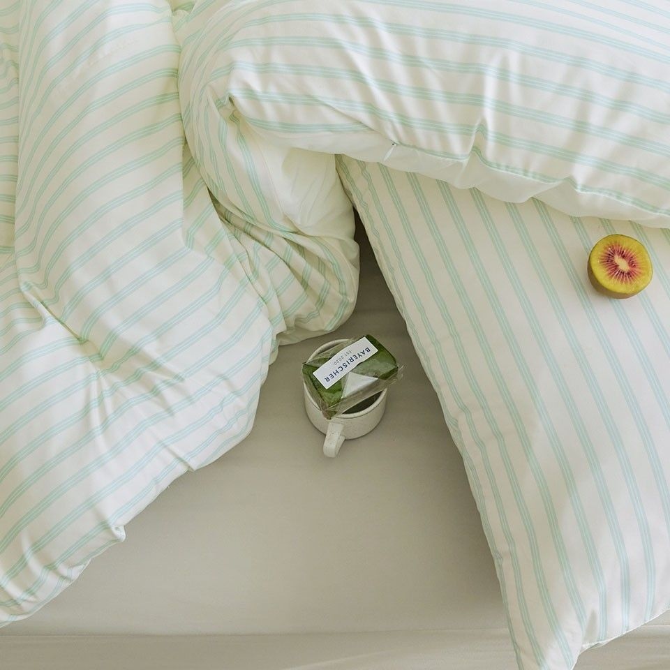 [깃든] 나란히 스트라이프 차렵이불세트 SS/Q/K