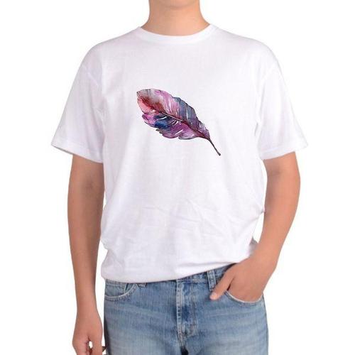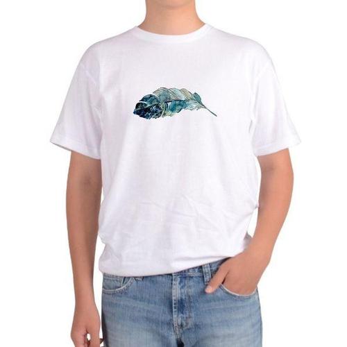 [에이치플러스몰]반팔 라운드티 깃털 수채화 feather bird