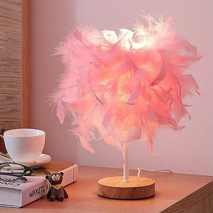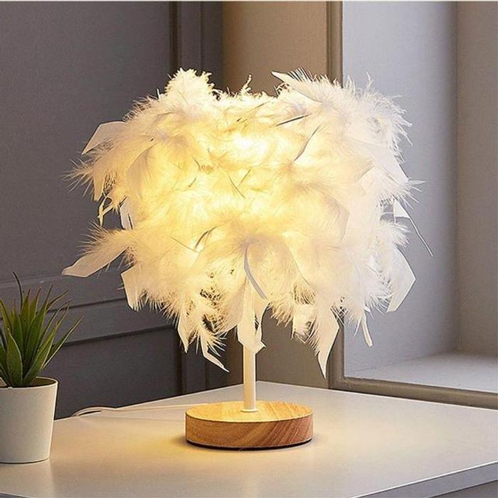 깃털 테이블 램프 흰색 빛 나무 전등 갓 LED 웨딩 장식 조명 생일 선물 홈