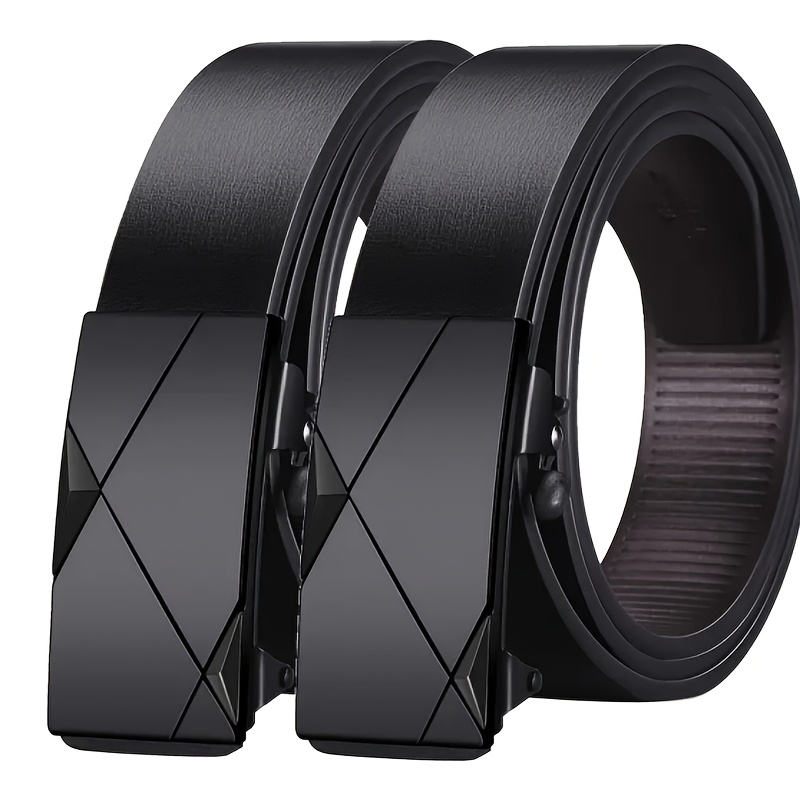 TEMU 남성용 스타일리시한 블랙 자동 버클 벨트 2개 - 청바지 및 비즈니스 캐주얼 착용을 위한 우아한 디자인, 완벽한 선물 아이디어, 캐주얼 의상 액세서리, 현대적인 액세서리, 내구성 있는 액세서리|청바지|남자벨트