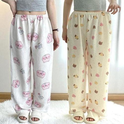 [셀러허브_여성트랜드패션]ONM 귀여운 프린팅 여성 와이드 팬츠 면 혼방 파자마