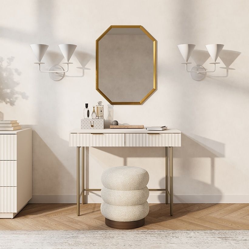 위즈룸 아치형 거울 템바보드 콘솔 화장대, 화이트