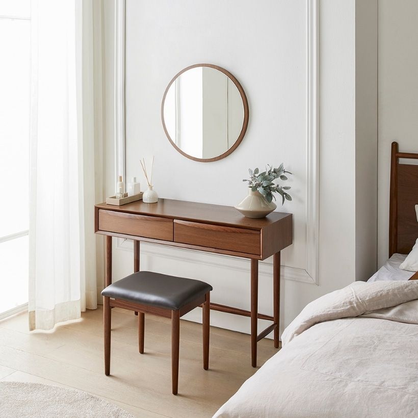 Montheria 화장대 원목 화장대의자 거울과 의자 포함 A598-110