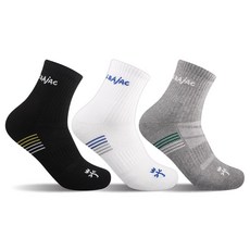 까스텔바작 남성용 쿠션 압박 중목양말 3족 세트, 블랙 + 화이트 + 그레이, 3개